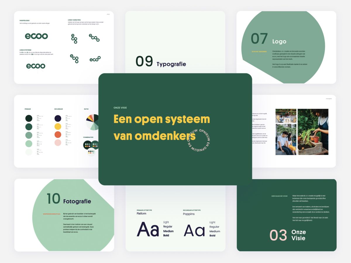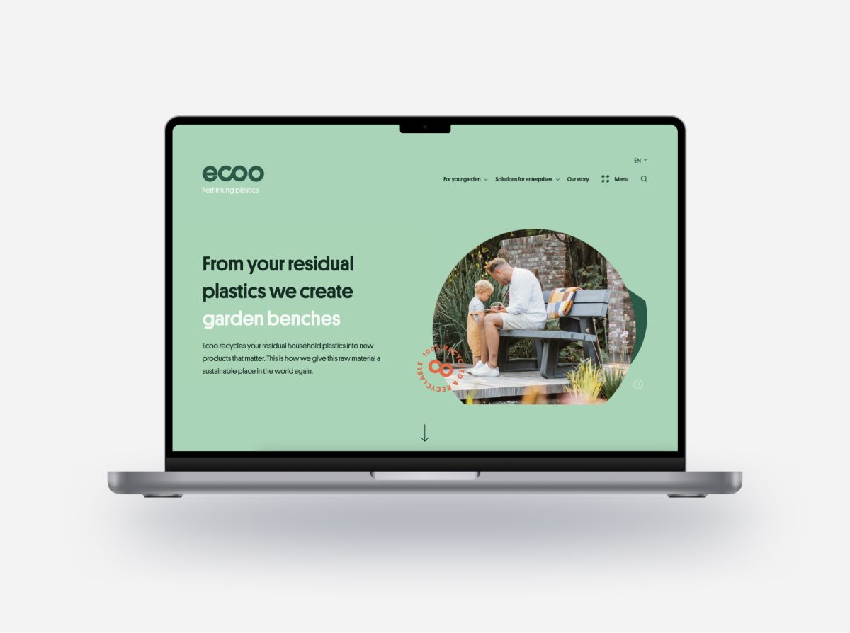 Ecoo recycles residual plastics into a granulate that is used to produce sustainable products. I worked on rebranding Ecoo to fit their growing business.